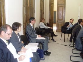 Visita del MRE. Ministros Gustavo Gómez, Alfredo Núñez y Consejero Juan Pablo Castillo, en ocasión de los preparativos por los festejos de Bicentenario de la República del Paraguay. 13/May/2011. |