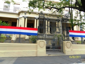 Ornamentación del edificio del Tribunal Permanente de Revisión para los festejos del Bicentenario de la República del Paraguay. 15/May/2011). |