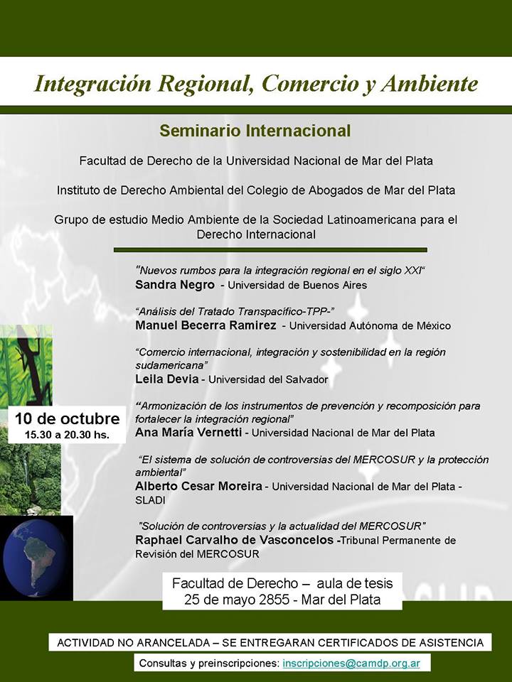 Encuentro Latinoamericano de Derecho Internacional, desarrollado en Foz de Yguazú, Brasil, los días 22, 23 y 24 de agosto de 2013.