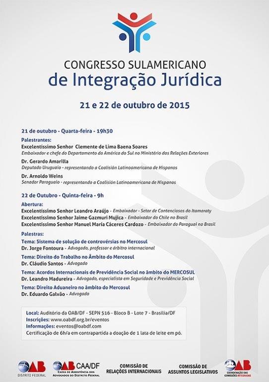 Congreso Sudamericano de Integración Jurídica. 21 y 22/Oct/2015. |