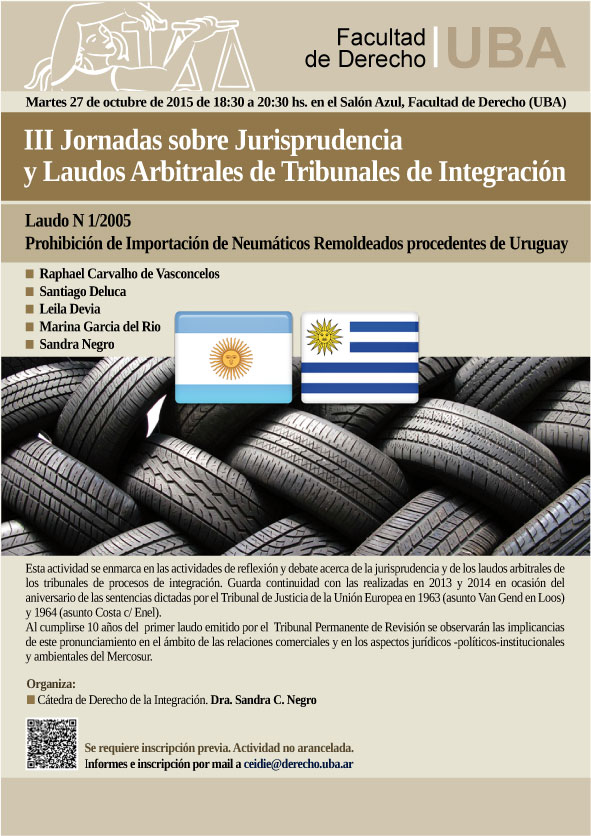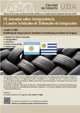 III Jornadas sobre Jurisprudencia y Laudos Arbitrales de Tribunales de Integración, en la UBA. 27/Oct/2015. |