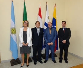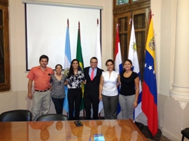 Visita del Vicerrector de la Universidad Nacional de Formosa (Argentina) y Profesor de la Cátedra "Mercosur", Dr. Roque Silguero, y los doctores Fernando Samaniego y Luis Scribano. 22/Abr/2015. |