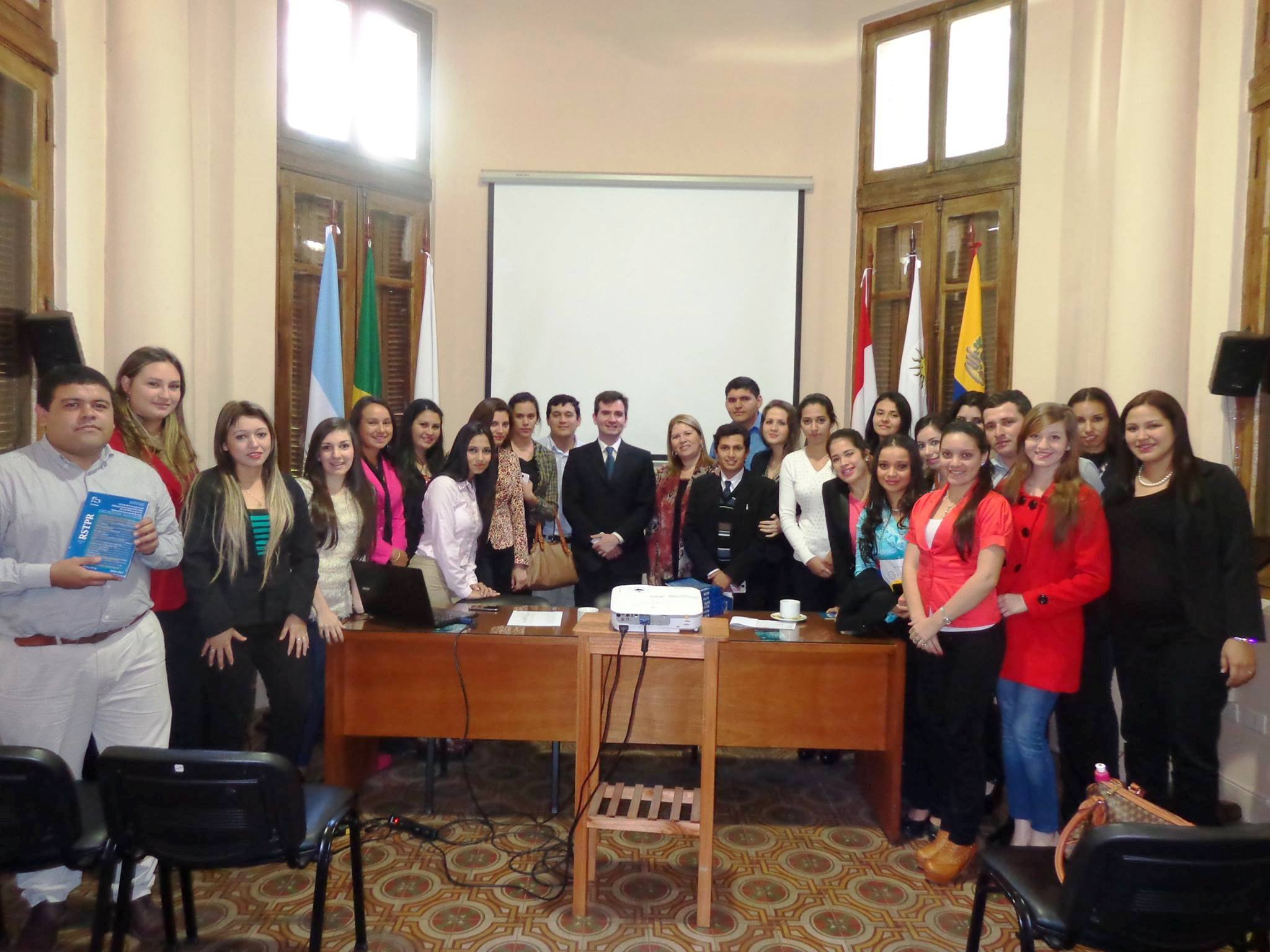 Visita técnica con simulacro de arbitraje, de estudiantes de Derecho de la Universidad Católica de Asunción, organizada por el Prof. Dr. Adolfo Vallejos. 28/Abr/2015. |