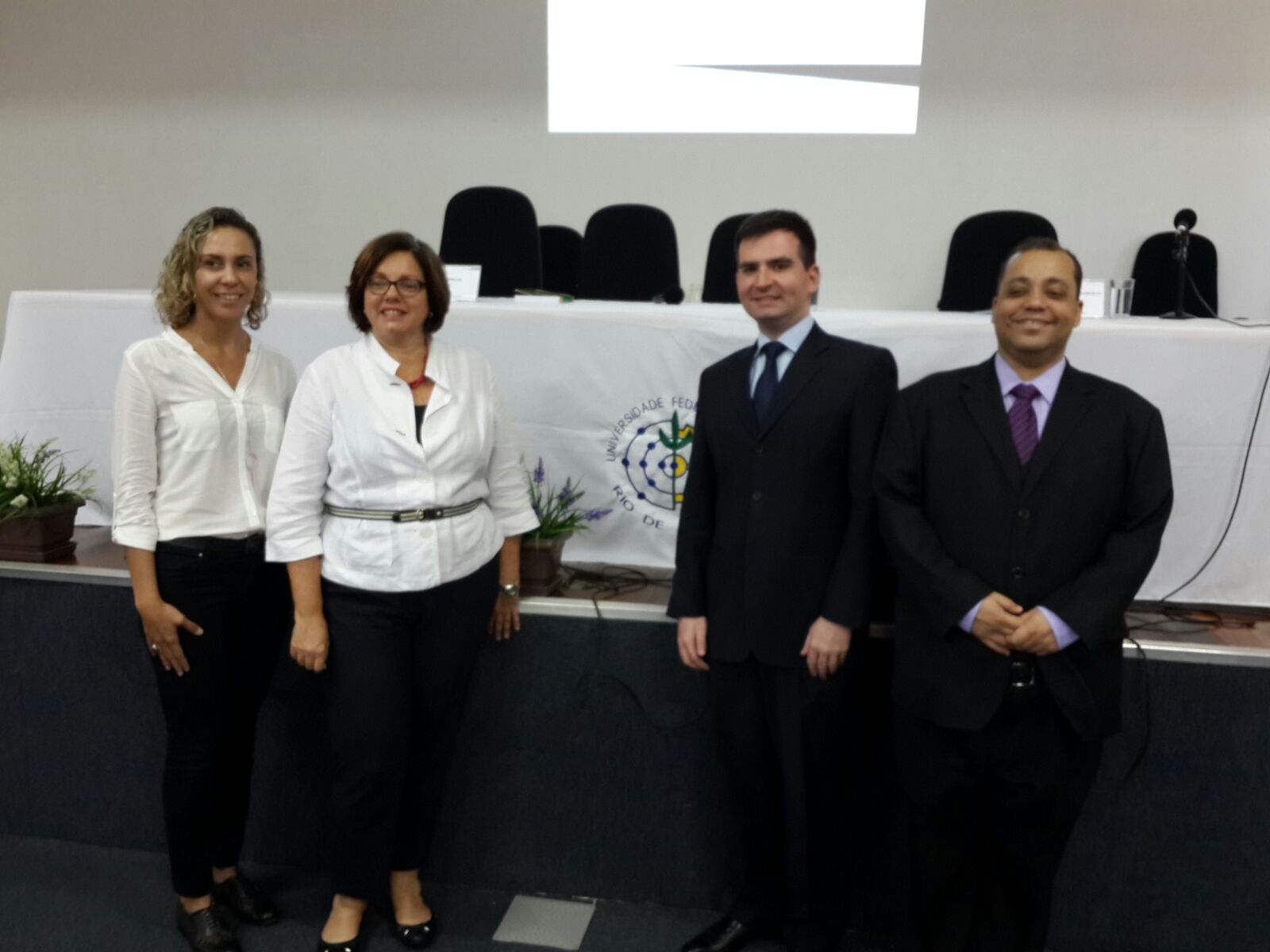 Prof. Flavia Cruz, Prof. Nadia de Araujo, el secretario do TPR, Raphael Vasconcelos, y el Prof. Bruno Almeida en la semana jurídica de IM-UFRRJ/Brasil. |
