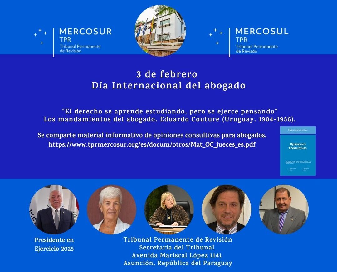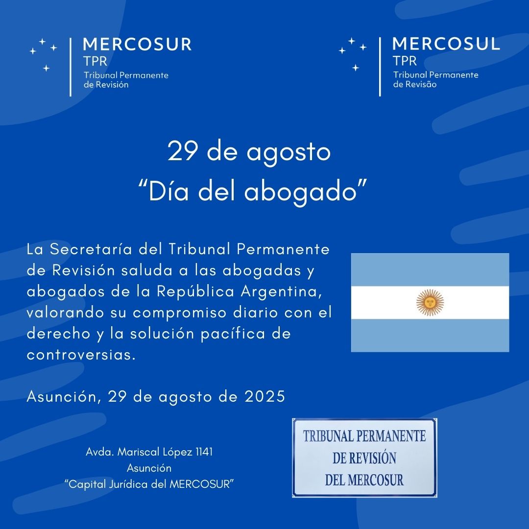 La Secretaría del TPR saluda en el Día del abogado a todos los profesionales del derecho de la República Oriental del Uruguay.
