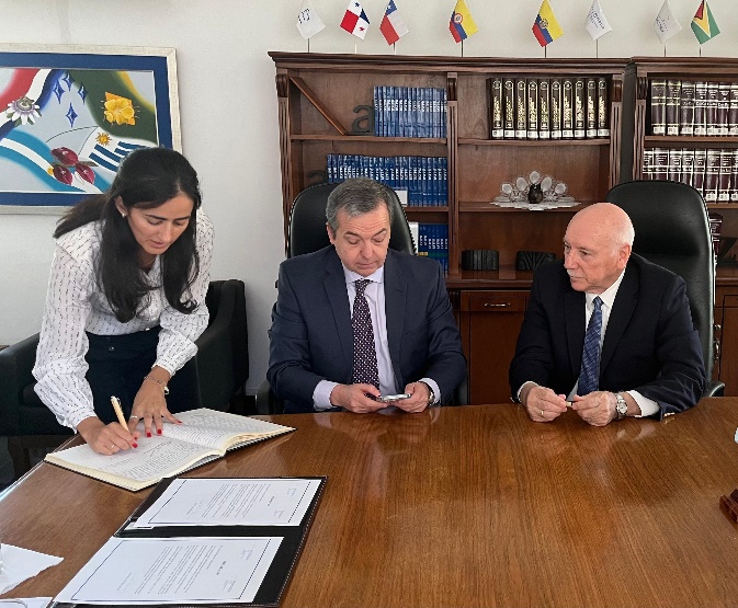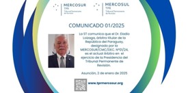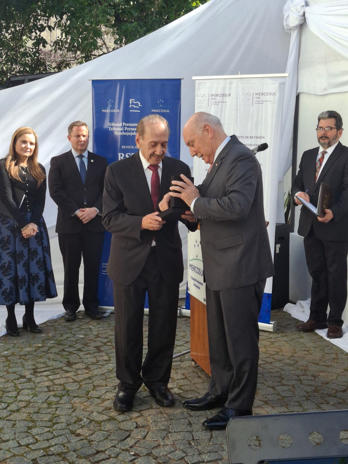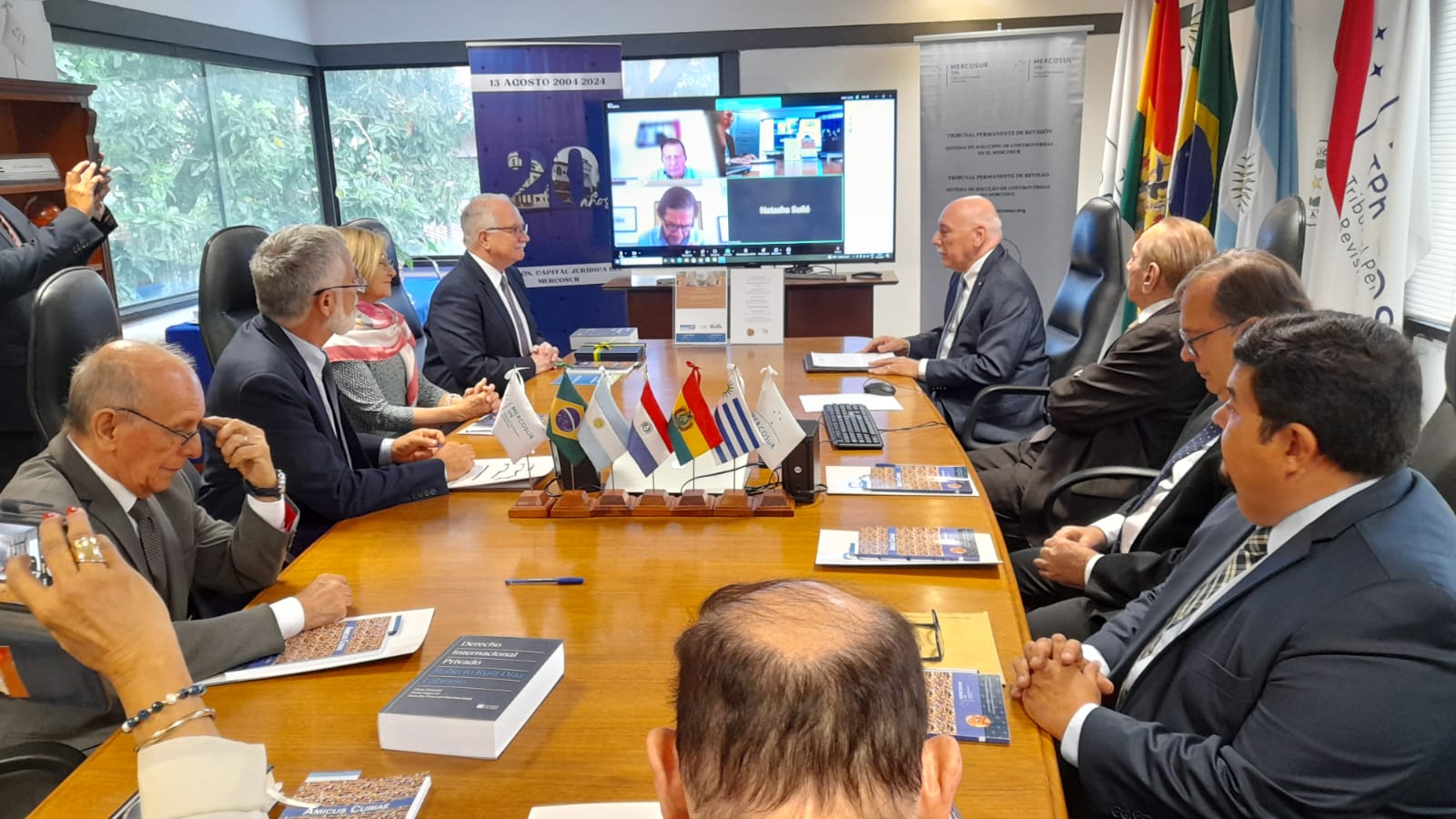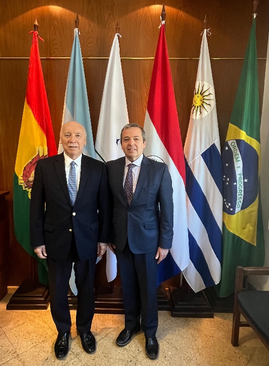 El Presidente del TPR, Emb. Eladio Loizaga, recibió al árbitro suplente de la República del Paraguay, Dr. Ernesto Velázquez Argaña, designado mediante la CMC/DEC Nº14/25, quien suscribió la Declaración de aceptación y disponibilidad permanente, en conformidad con lo dispuesto en el artículo 19 del Protocolo de Olivos y en el artículo 33 de la CMC/DEC Nº05/22 (Reglamento del Protocolo de Olivos). 18/Nov/2025. |