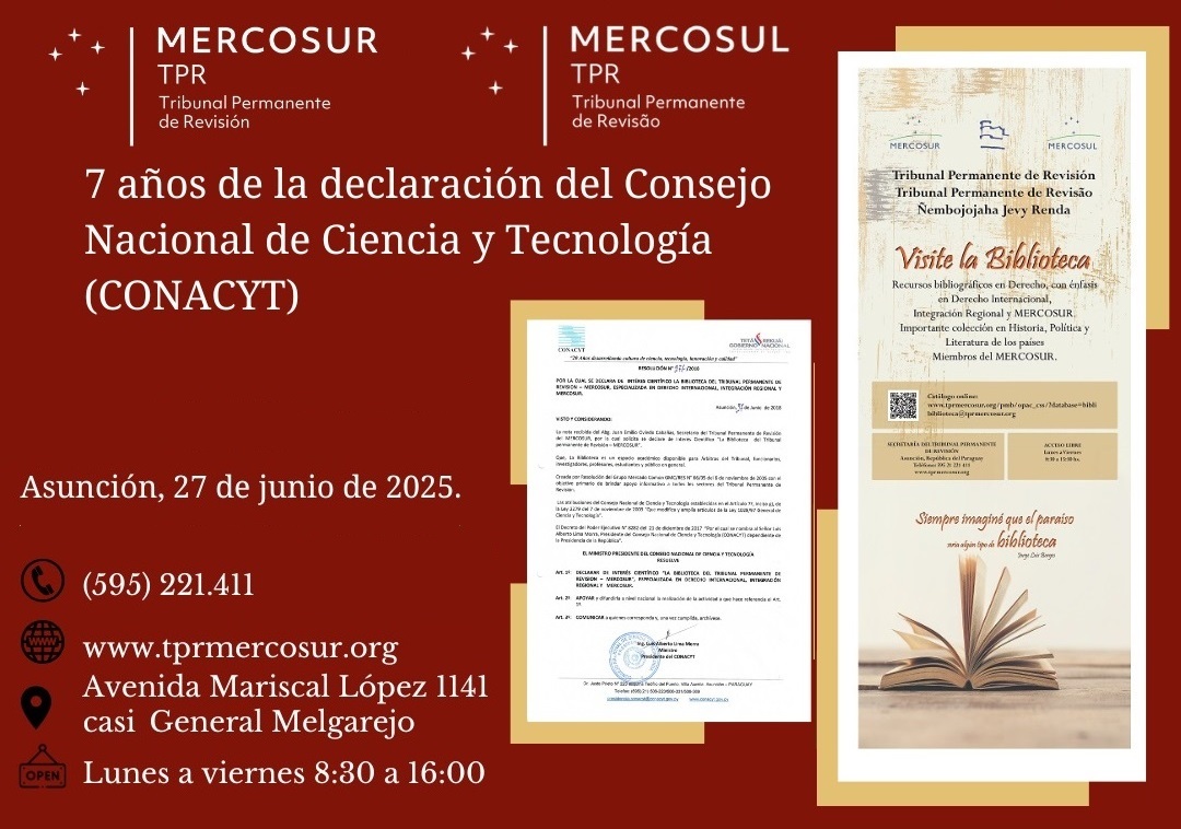 En el día del 34º aniversario del Mercosur es un honor presentar un nuevo libro de la UCMPED: Memorias del Seminario Internacional "O Tribunal Permanente de Revisão do Mercosul: relevância e perspectivas", con las ponencias de los árbitros y magistrados del STF de Brasil, entre otras autoridades. Este libro contiene las presentaciones del Seminario Internacional organizado por la ministra Rosa Weber en el marco de la conmemoración de los veinte años de la instalación del TPR en la ciudad de Asunción, capital jurídica del Mercosur. Es un honor para la ST compartir esta valiosa obra que tiene como fin enriquecer el debate sobre la relevancia y perspectiva del TPR para nuestro bloque regional. https://tprmercosur.org/es/docum/cmped/libro2025_mem_semin_stf.pdf. 26/Mar/2025. |