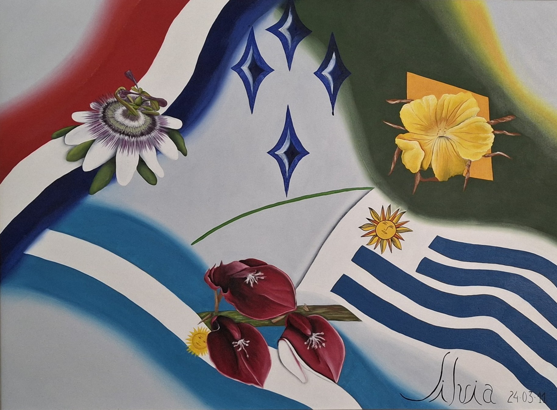 Nombre de esta obra: Integración. Muestra las flores nacionales de los cuatro países