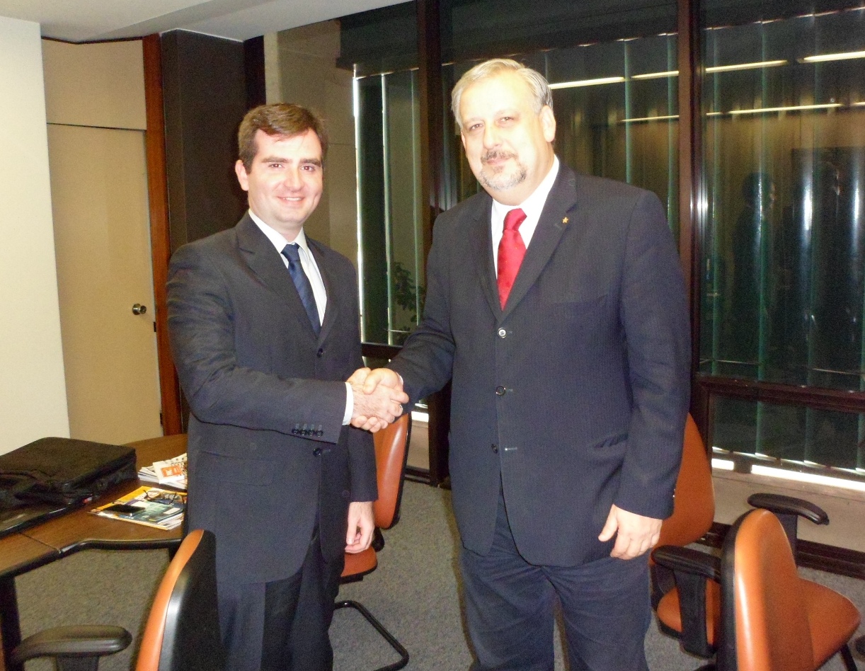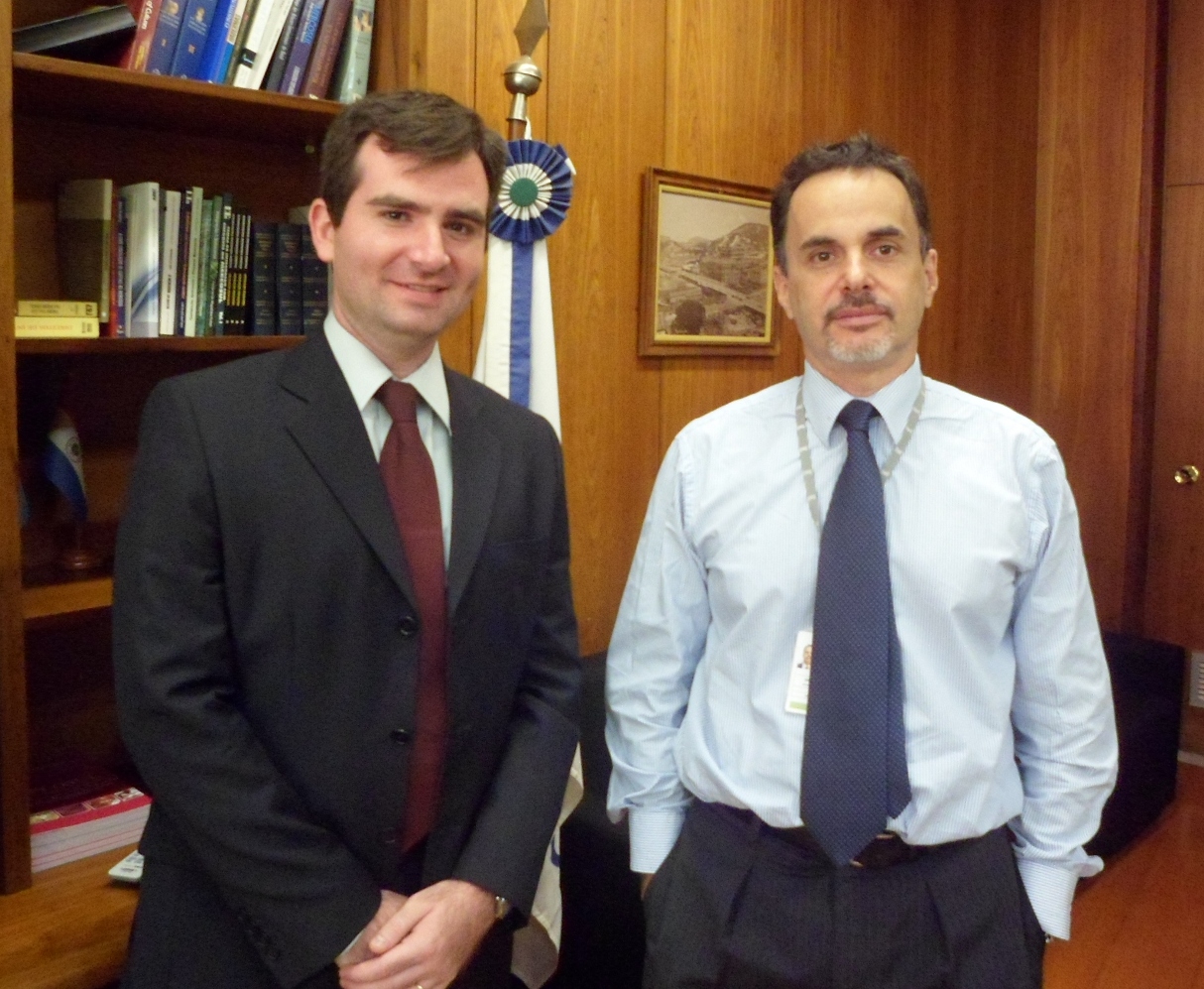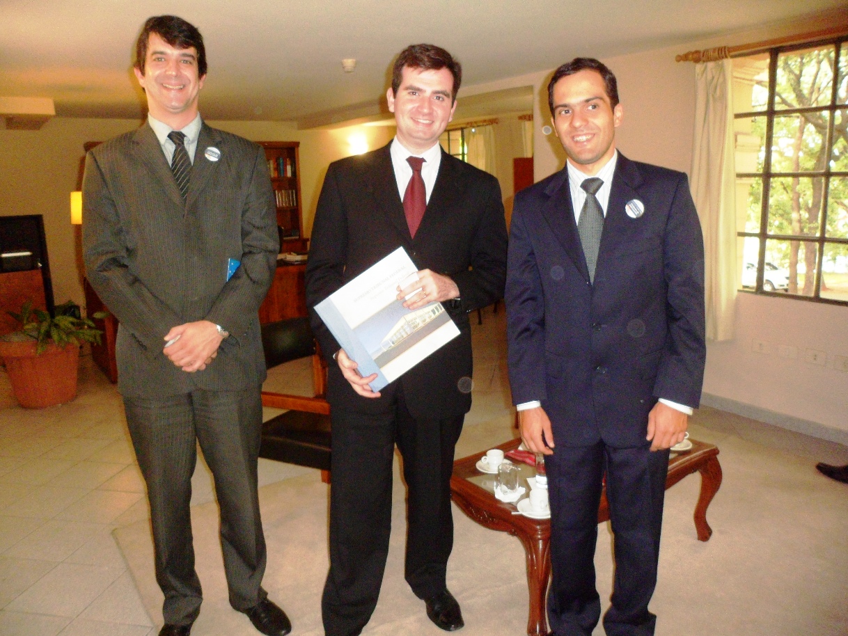 Visita Oficial do Secretário do TPR a Brasília, 14 a 18 de maio de 2012 O Secretário do TPR, Raphael Carvalho de Vasconcelos, esteve em visita oficial a Brasília para tratar de temas importantes para o Tribunal com autoridades brasileiras. No poder judiciário, o Secretário teve reuniões com o Ministro Ari Pargendler, Presidente do Superior Tribunal de Justiça, com o Ministro Luís Inácio de Lucena Adams, Advogado-Geral da União, com o Procurador-Geral da República, Roberto Monteiro Gurgel Santos, e com o Presidente do Supremo Tribunal Federal, Ministro Carlos Ayres Britto. O tema dos encontros foi a regulamentação dos procedimentos de encaminhamento de solicitações de Opiniões Consultivas ao TPR pelo Supremo Tribunal Federal e as possibilidades de estabelecimento de parcerias na difusão do instrumento no judiciário brasileiro. |