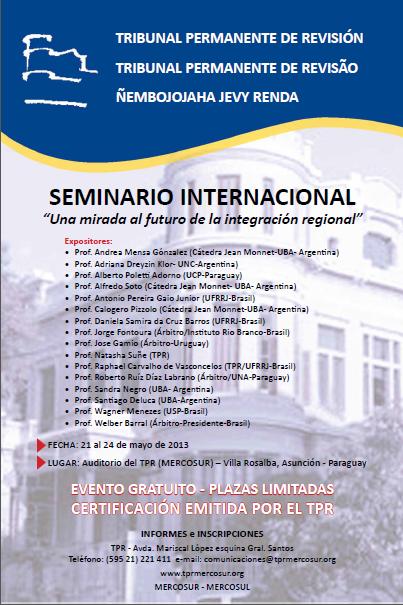 Seminário Internacional: "Una mirada al futuro de la integración regional", 21 ao 24 de maio de 2013. |
