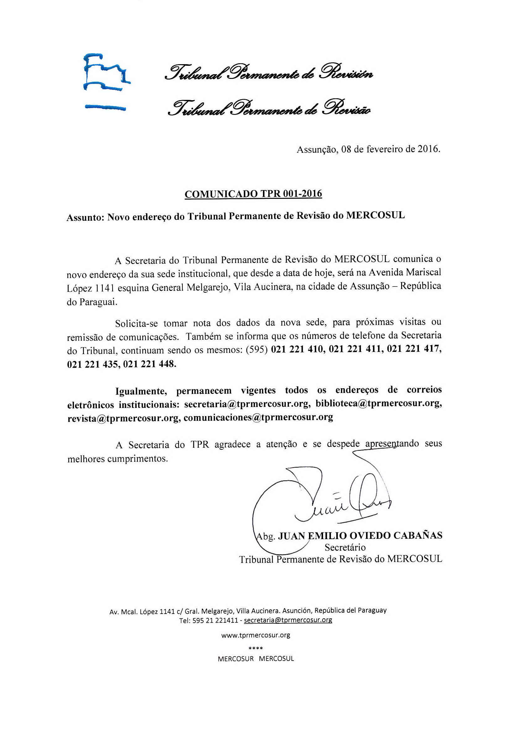 A Secretaria do Tribunal Permanente de Revisião informa que