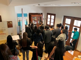 Ele foi recebido pelo secretário, Dr. Juan Emilio Oviedo