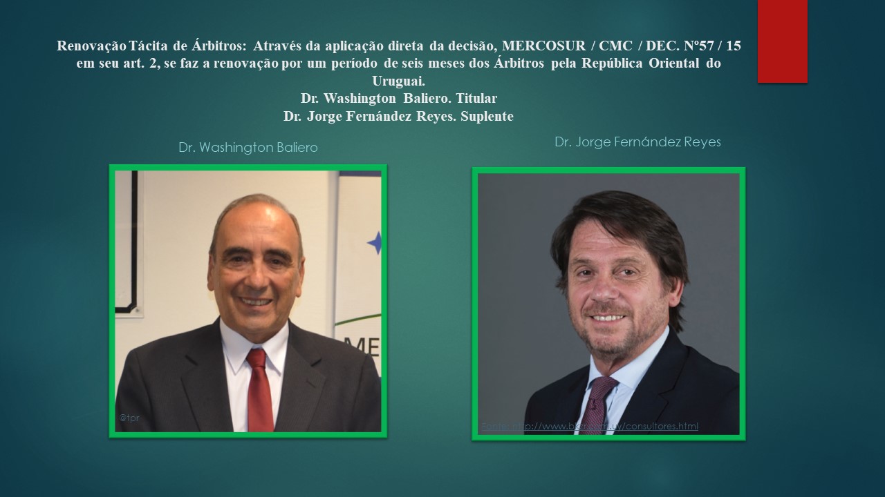 O Dr. Guillermo Michelson Irusta, Árbitro do TPR pela