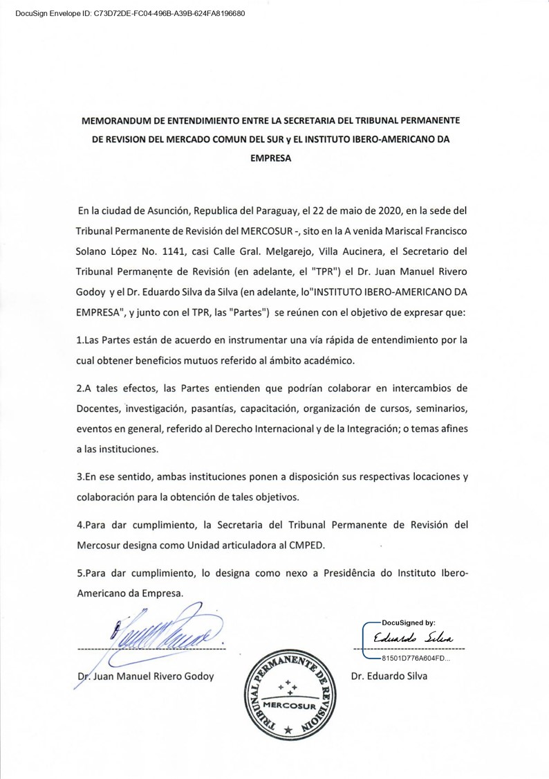 Rivero Godoy, ao Instituto Social do Mercosul (ISM), onde foi