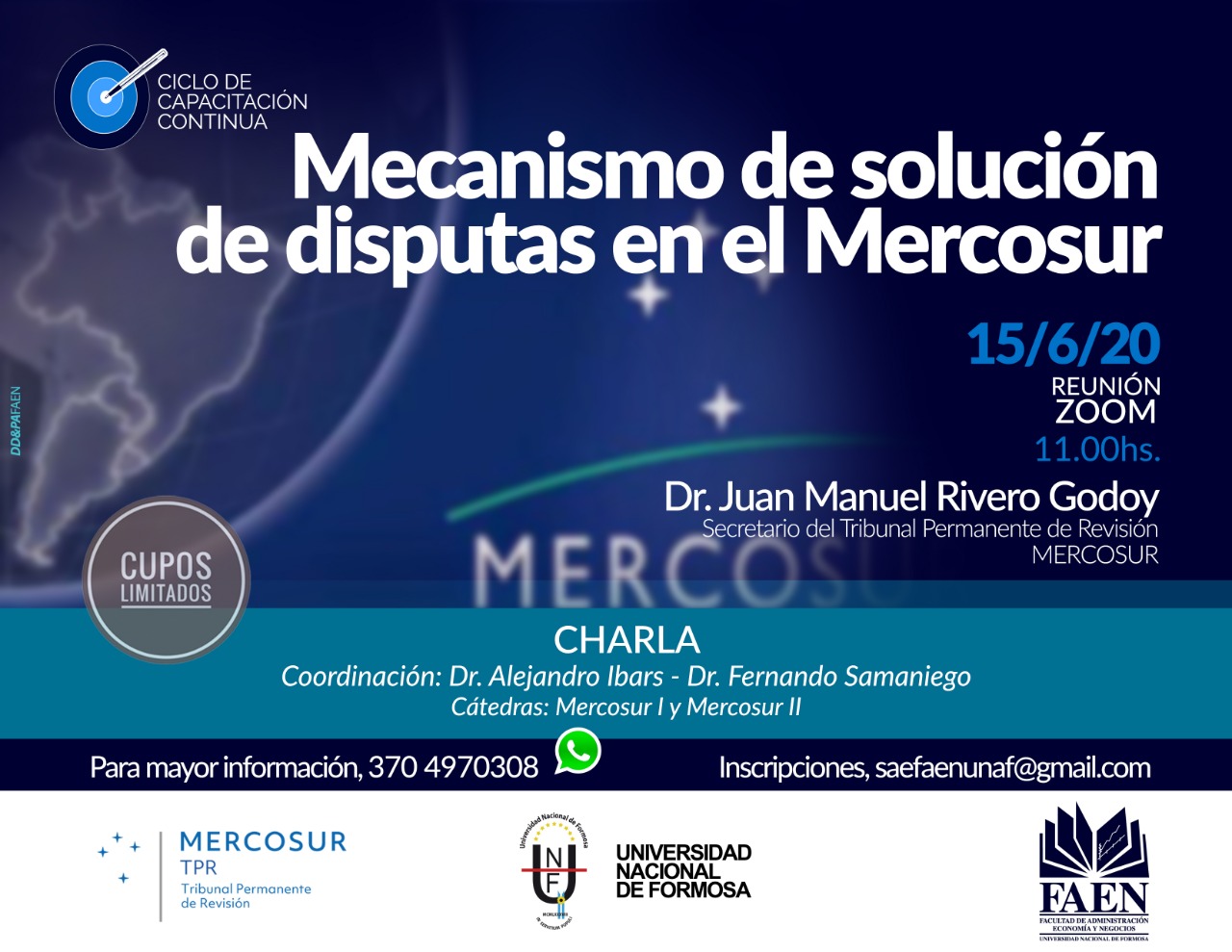 Disputas en el Acuerdo UE-Mercosur", via Zoom, em comemoração à