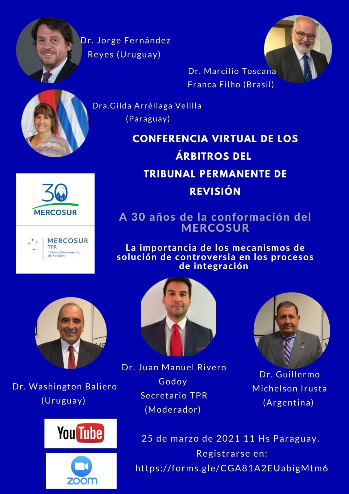 Nos 30 anos desde a assinatura do Tratado de Assunção, a Secretaria do Tribunal Permanente de Revisão realizou a teleconferência: "La importancia de los mecanismos de Solución de Controversias en los procesos de integración"