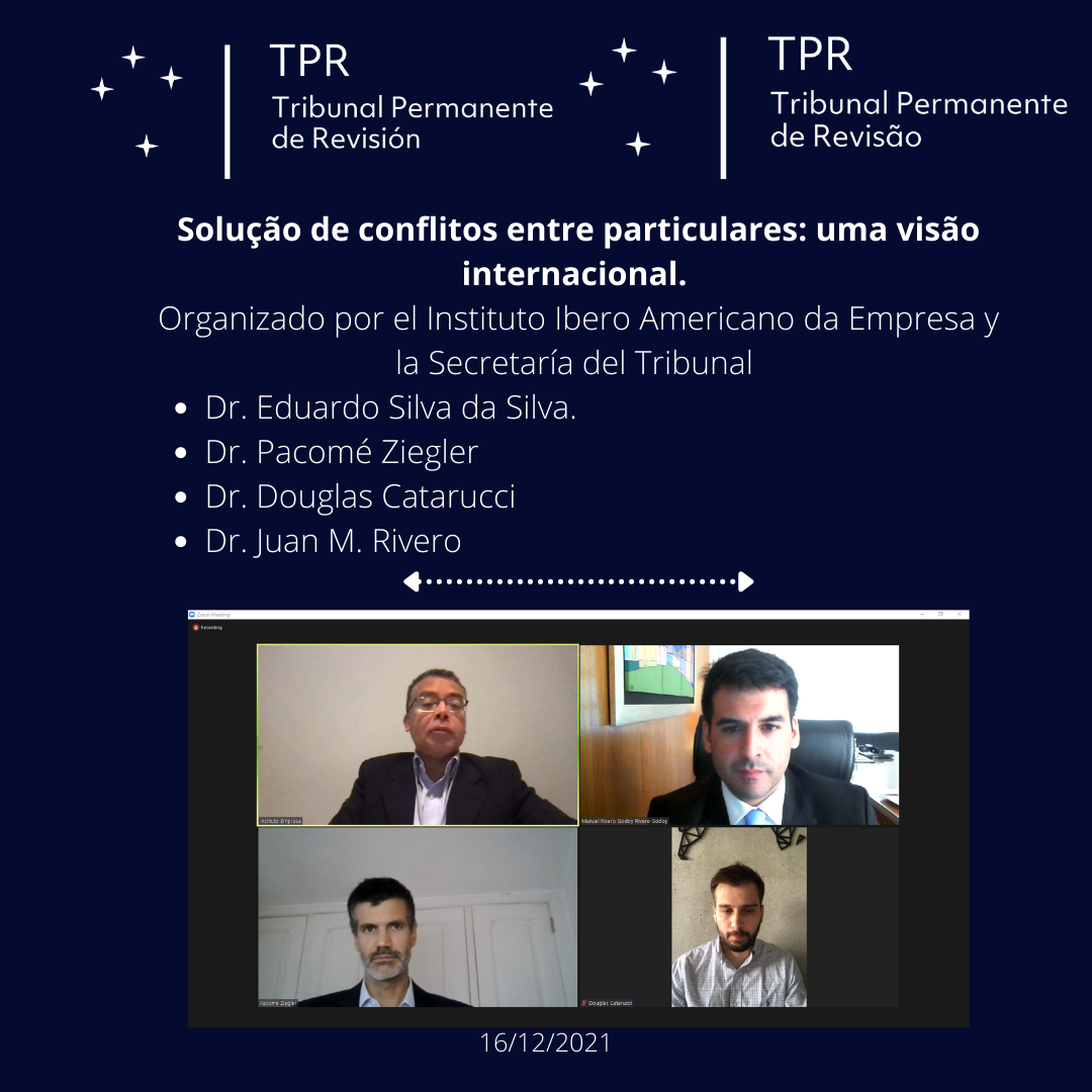 No âmbito do 17º aniversário da instalação do TPR, foi realizada uma palestra cujo título foi: "Arbitragem e Mediação: Desafio e novos horizontes para o Mercosul". Nele foi mencionada a necessidade de modernizar o mecanismo de solução de controvérsias, entre outros temas relevantes. Da mesma forma, destacaram-se as atividades desenvolvidas pelo ex-árbitro da República Argentina, Dr. Guillermo Michelson Irusta, que recebeu a Medalha Rosalba por seu trabalho. Transmitido no YouTube: https://youtu.be/sxnsWjWci5o 13/Ago/2021. |