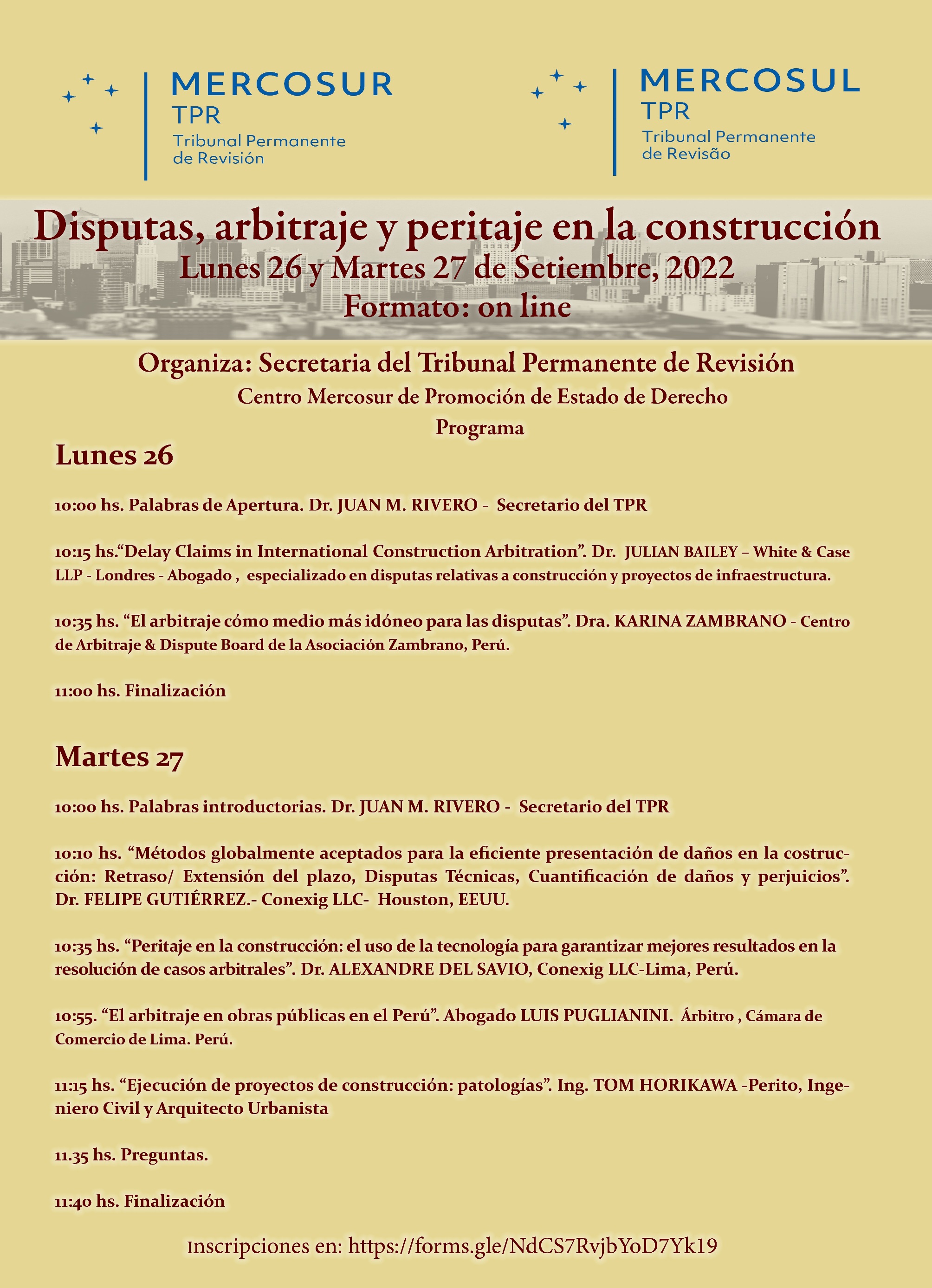 Data: 26 e 27 de setembro de 2022, as 10:00 do Paraguai.